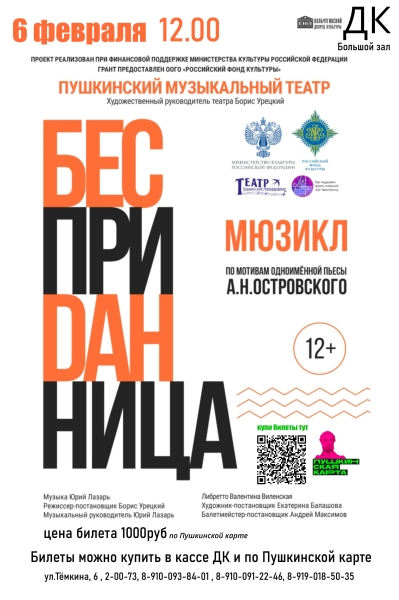 цена билета 1000 руб - Покупка возможна и по Пушкинской карте https://vmuzey.com/event/myuzikl-bespridannica-1